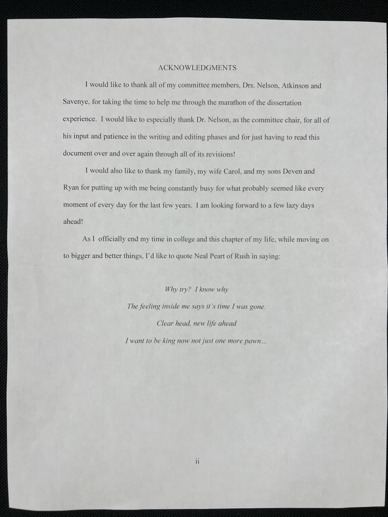 The Acknowledgements page from Scott’s dissertation (December 2014)
