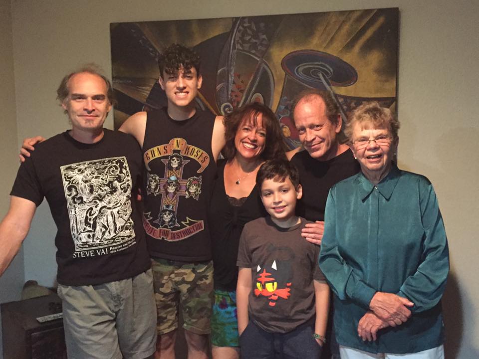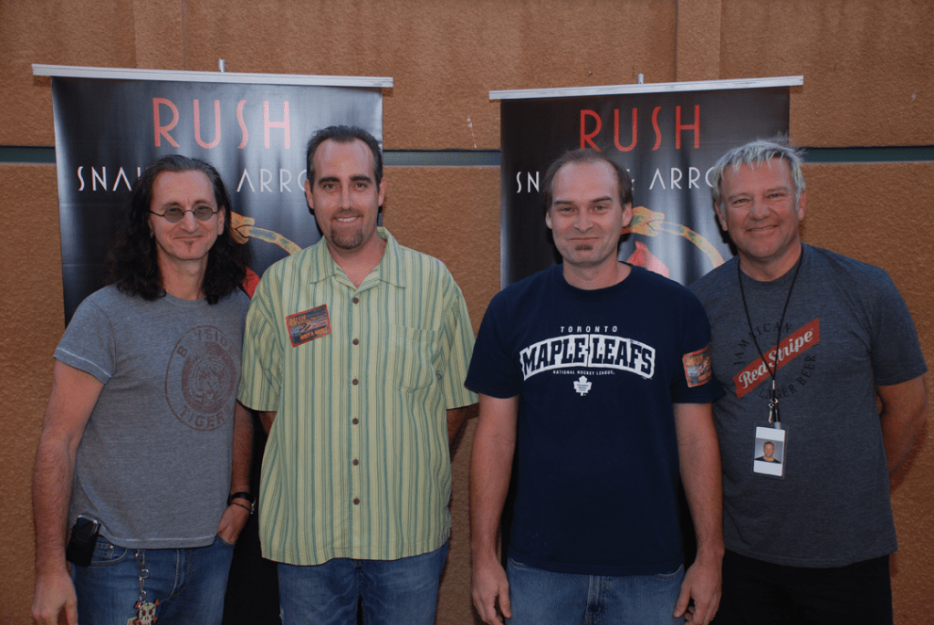 Scott (2nd from right) with his lifelong friend Bill meeting Geddy Lee and Alex Lifeson from Rush