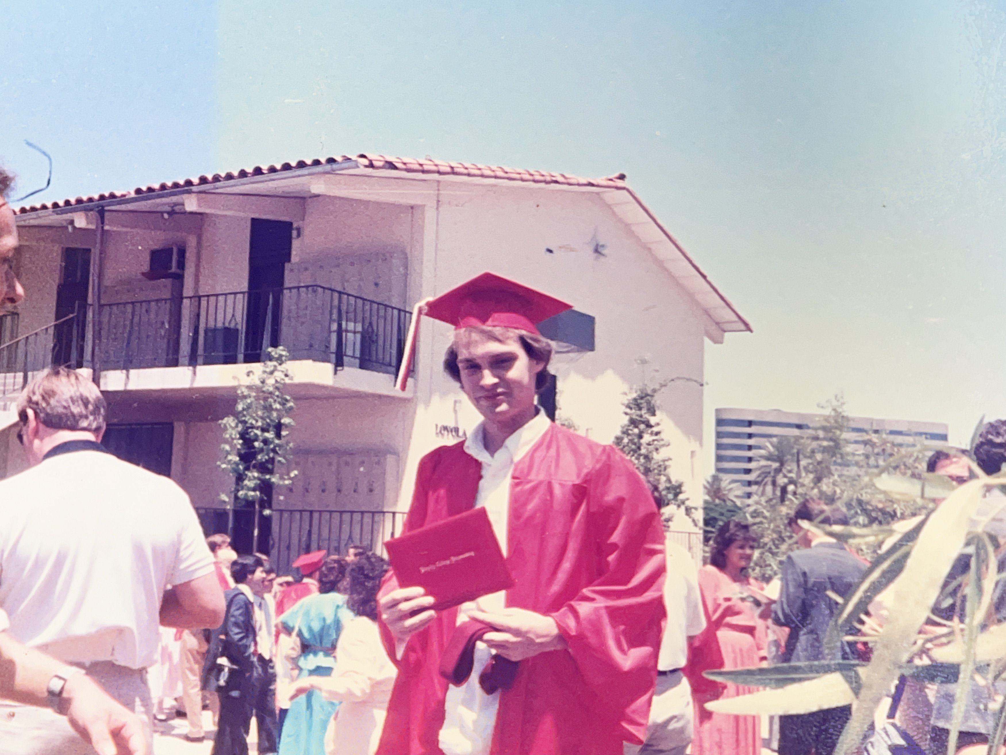 Scott at his high school graduation from Brophy College Prep. In the background is the room that had the donut mixers post-church services.
